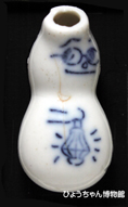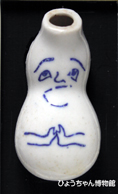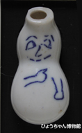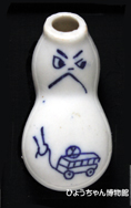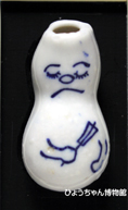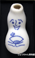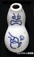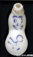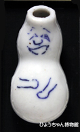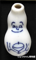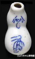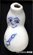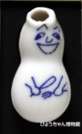| 昭和30年/1955年に登場した初代ひょうちゃんです。色は、青(コバルト)色のみで 形もひとつひとつ石膏の型に陶土を入れて作る手作りの為、不揃いです。 フクちゃんで有名な漫画の大家 横山隆一氏が顔を48種類描いて、名前も 「ひょうちゃん」と名付けました。当初は、ひょうちゃん百面相にちなんで、100種類の 顔になる予定でしたが、48種類に落ち着きました。 高度成長期には、プラスチックの物も登場しました。 コレクションの中に、顔が描かれていない物がありますが、ひょうちゃんになる以前の 物と思われます。 |