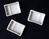 現在、発売されているシウマイに付属している醤油皿。ひょうちゃんは、このお手ふきの下、洋辛子と一緒に入っています。お手ふきの上側にシウマイを食べる為のようじがあります。